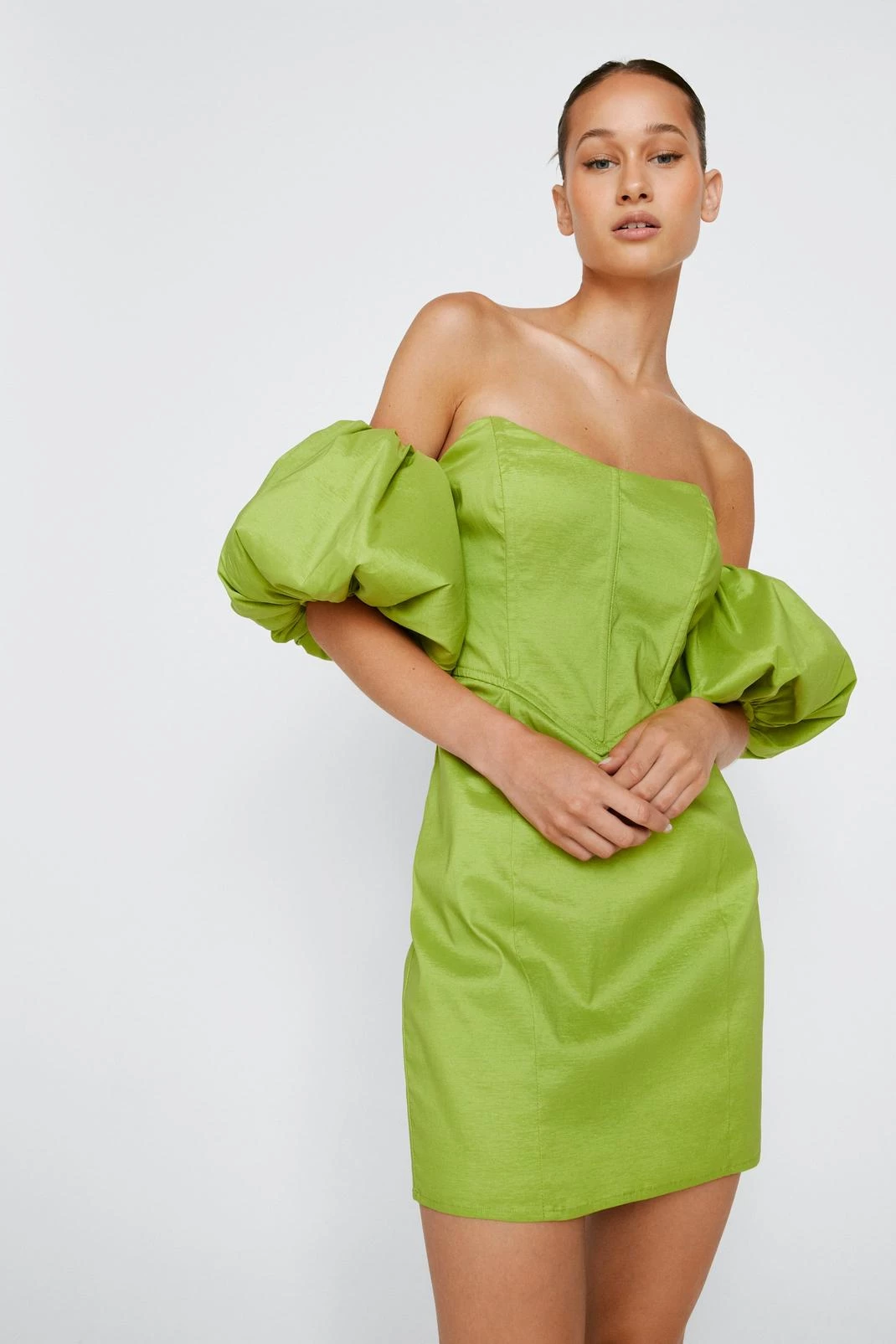 Formal Wear Bardot Taffeta Mini Dress -Christmas Sales womens lime bardot taffeta mini dress 1