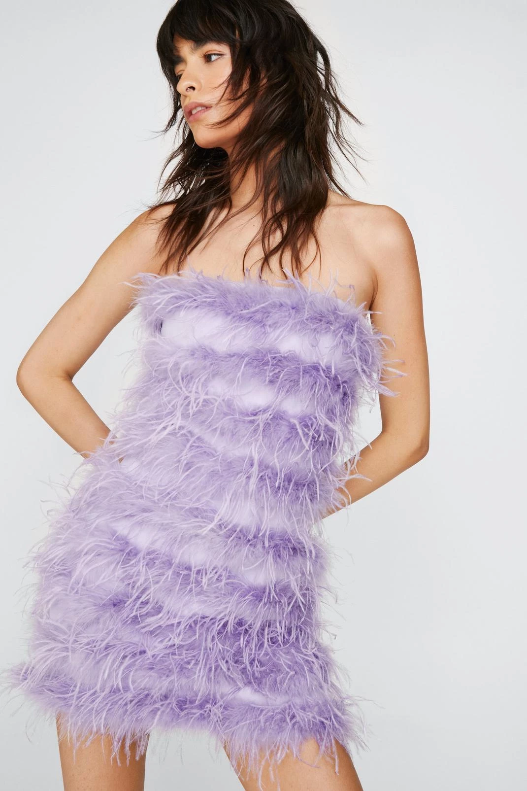 - Feather Bandeau Mini Dress