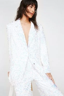 Sparkle away. Complete the look by styling with the matching blazer, a bralette, and strappy heels.