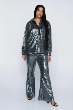 Shirts Plus Size Sheer Sequin Relaxed Fit Shirt